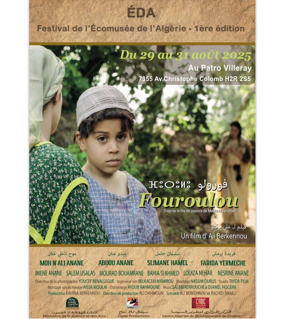 Le film FOUROULOU, rĂ©alisĂ© par Ali Berkennou dâaprĂšs le roman Le Fils du pauvre de Mouloud Feraoun, sera projetĂ© en avant-premiĂšre nord-amĂ©ricaine au QuĂ©bec.